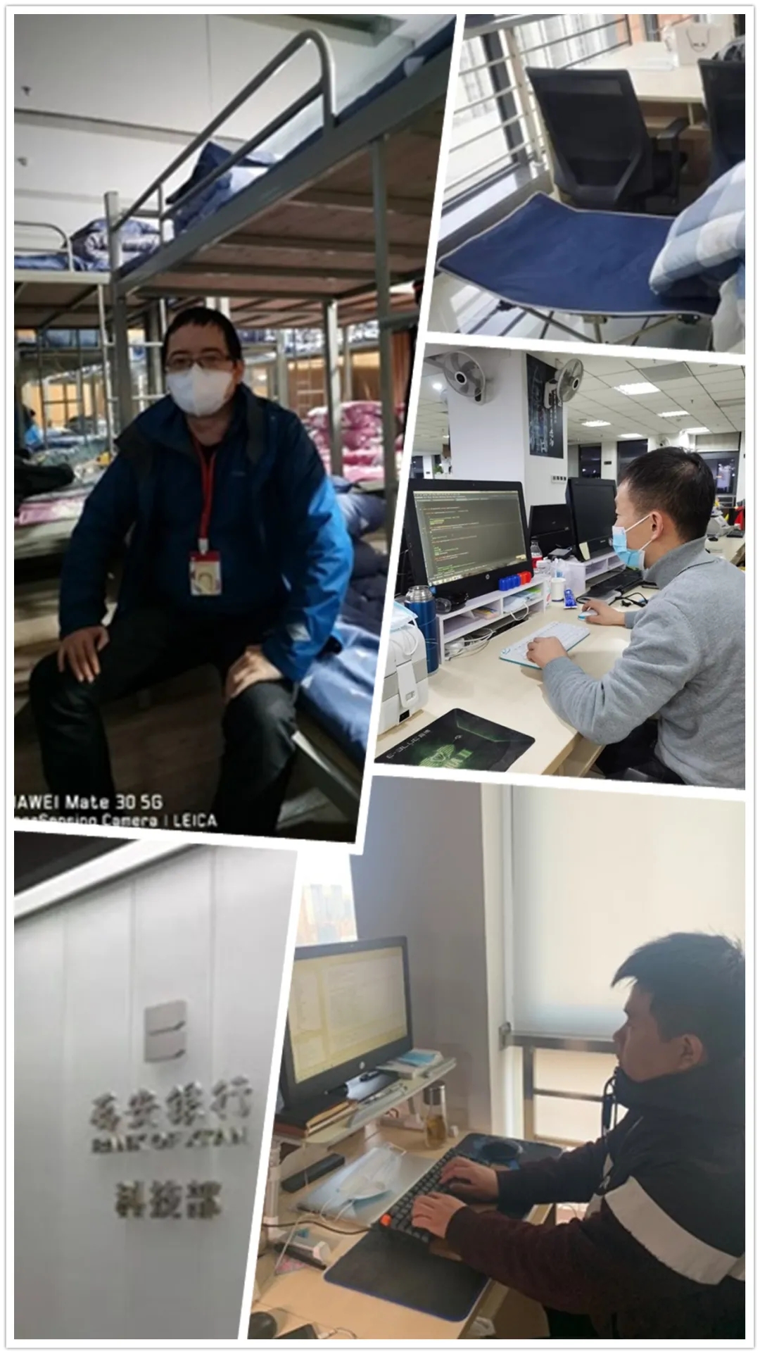 在这次防疫大考中,陕西信合项目组的两名同事惠恒、靳嘉也主动请缨,从12月22号开始,两位同事一直坚守在一线岗位,他们克服生活条件上的不便,舍小家,为大家。当问到他们在现场的生活有什么困难时,他们说到:“没困难,什么都不缺,家里也都安顿好了。”当提醒他们在现场注意安全,做好防疫措施的时候,他们说到:“在艰难时刻,我们愿意为公司赢得荣誉,这都是我们应该做的。”
